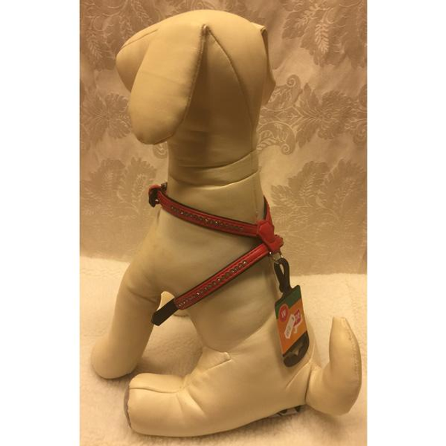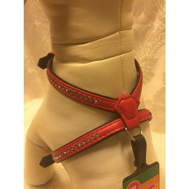 Adori art lederen harnas/tuig is gemaakt van twee lagen kunstleer met een verstevigde kern van teflonlint. De tuigjes zijn voorzien van een degelijke fournituren en zijn prachtige afgewerkt met strass. Leverbaar in de kleur rood, in maat M/L.