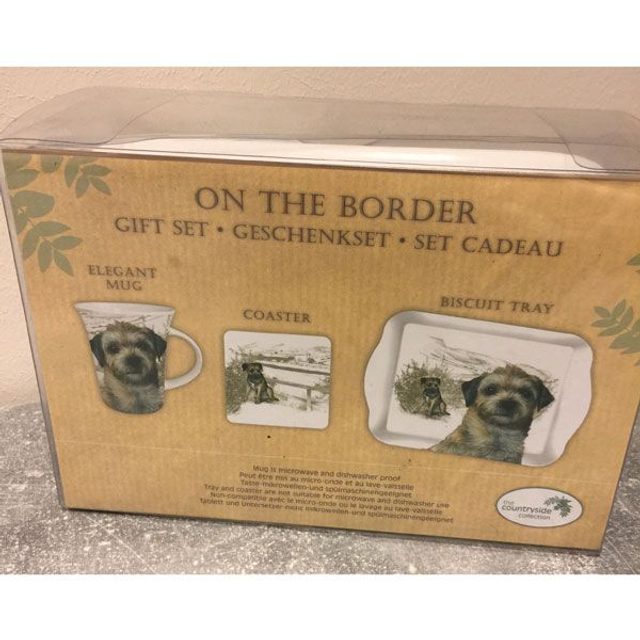 The Countryside collectie cadeauset On the Border voor de Border liefhebber! Deze leuke set bestaat uit een beker, onderzetter en serveerschaaltje met een afbeelding van een Border. Leuk om cadeau te geven of te krijgen! Leverbaar in mooie cadeauverpakking. Deze set is geschikt voor de vaatwasser en magnetron. Leverbaar in de kleur wit/bruin