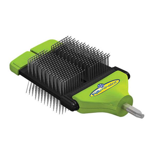 Je scheidt en ontwart de vacht van je kleine hond op de meest voorzichtige manier met de FURminator dual slicker brush small dogs. Deze borstel werkt het best op een lange, middellange, gekrulde, ruwachtige of zijdeachtige vacht. De dubbele, flexibele kop volgt de natuurlijke contouren van het lichaam van jouw viervoeter. Het verwijdert losse haren en ontklit en verzacht de vacht van jouw hond, zonder aan de huid te trekken of te krassen. Dit opzetstuk past perfect op het FURminator FURflex Handvat. Leverbaar in de kleur groen.