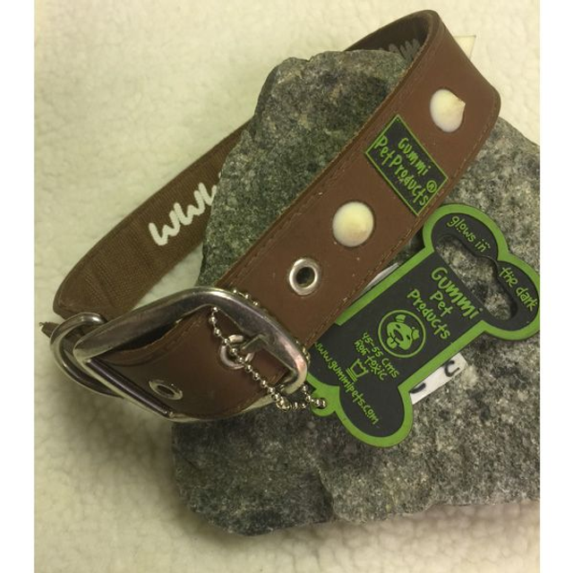 Gummi Pet Products halsband spikes met verchroomd beslag is een gestikte halsband gemaakt van nylon en kunstleer afgewerkt met zachte spikes. Het kunstleer is weerbestendig en afwasbaar. Deze halsband is geschikt voor middelgrote tot grote honden. Leverbaar in de kleur bruin/ecru.