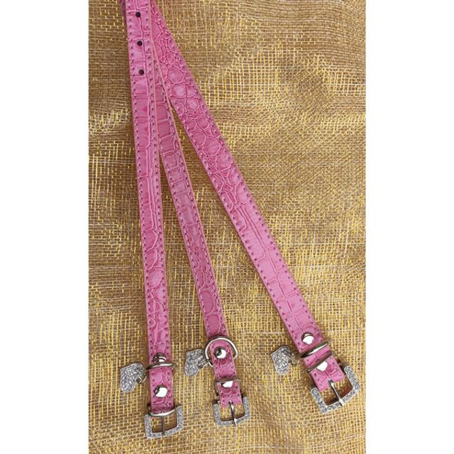 Halsband gemaakt van kunstleder snakeprint met strass gesp en afgewerkt met strass bedel met hartje. Deze halsband is geschikt voor kleine honden. Leverbaar in de kleuren wit en roze, in maat S.