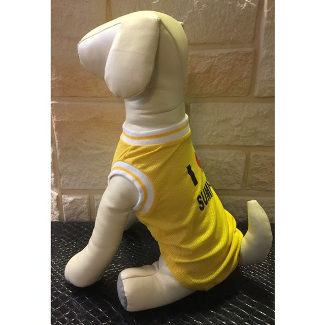 Hondenshirt geschikt voor kleine hondjes met de tekst "I love summer". Leverbaar in de kleur geel, maat XS. Rugmaat: 29 cm. (gemeten van nek tot begin staart).