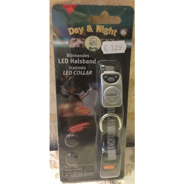 Karlie day and night blinkende LED halsband is een halsband met LED verlichting om uw hond overdag en vooral in het donker zichtbaar te maken voor uzelf en andere. Deze verstelbare halsband is geschikt voor kleine en middelgrote honden. Leverbaar in de kleur grijs.