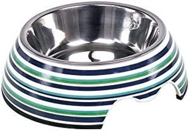 Deze Nobby voer/drinkbak gemaakt van melamine met aan de buitenkant strepen design en een uitneembare stalen binnenkant. Hierdoor is de bak heel makkelijk te reinigen, ook in de vaatwasser. De onderkant van de voerbak is voorzien van een rubberen ring voor een stevige stand. Melamine is een speciaal soort kunststof, extreem lichtgewicht en tegelijkertijd kras en schokbestendig. Het is een duurzaam materiaal en bestand tegen hoge en lage temperaturen. Door het porseleinachtige oppervlak is deze bak zeer hygiënisch. Melamine is daarom zeer geschikt voor voerbakken. Leverbaar in multicolor.
