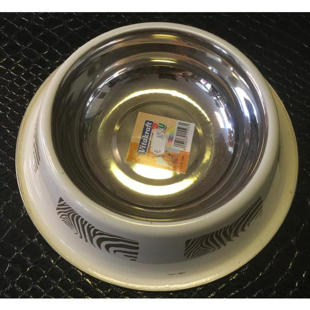 Vitakraft RVS voer/waterbak met zebraprint geschikt voor alle honden en grote katten. Leverbaar in de kleur roomwit/zilver.